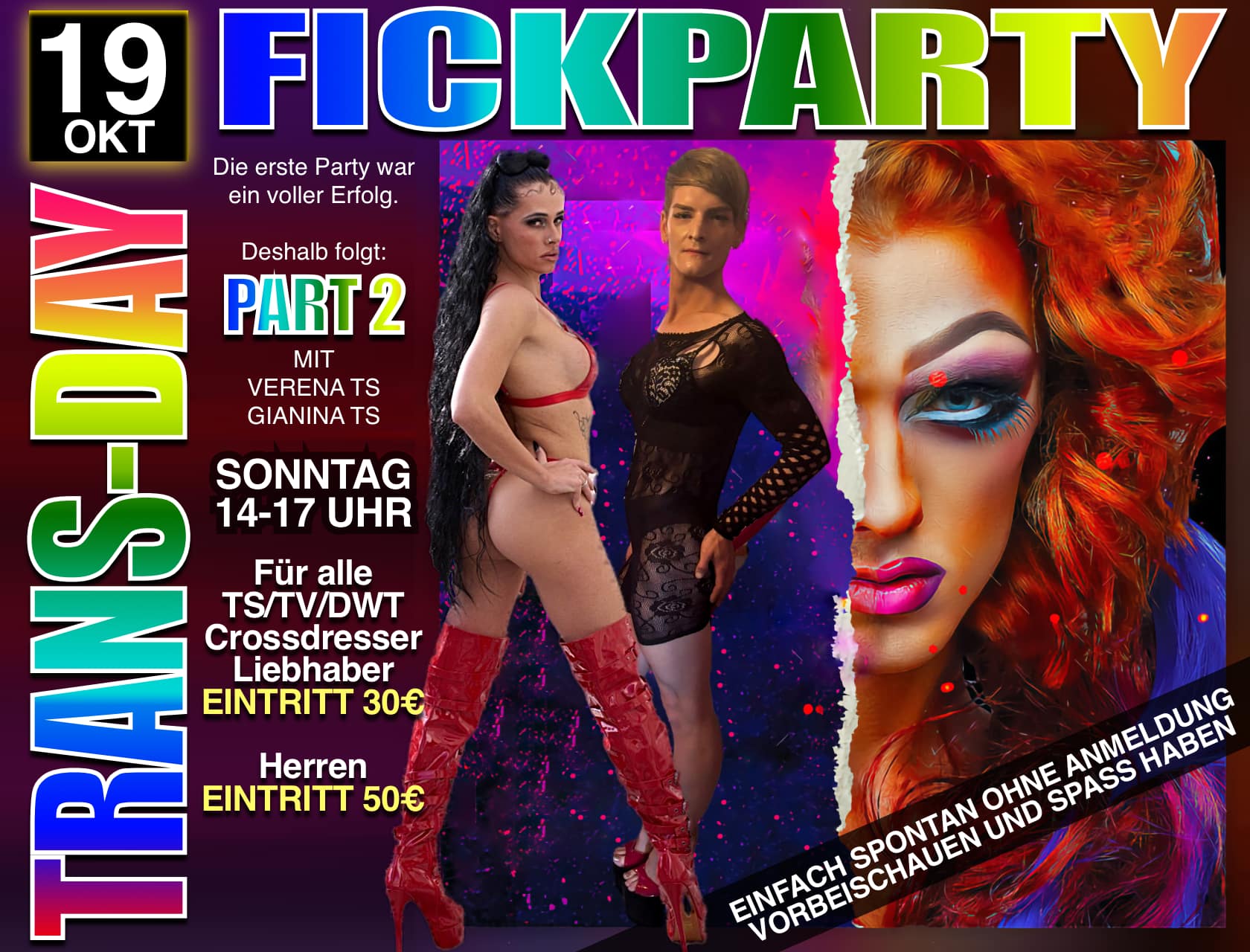 Zur Anmeldung19OKT14:0017:00🏳️🌈 TRANS-DAY | FICK PARTY! 🏳️🌈 Part 2Gastgeberin GIANINA TS